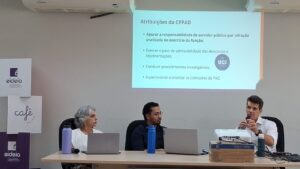 Os palestrantes esclareceram as funções dos seus respectivos setores, apresentando suas principais atribuições e atividades. Também foram esclarecidos os conceitos de integridade pública e como os dois setores contribuem para o seu fortalecimento.
